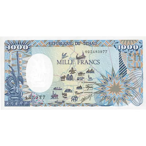 REPUBLIQUE DU TCHAD MILLE FRANCS (Translation: REPUBLIC OF CHAD ONE THOUSAND FRANCS) |