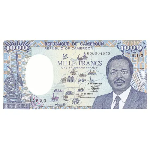 | Opis líce | République du Cameroun Republic of Cameroon mille francs one thousand francs |