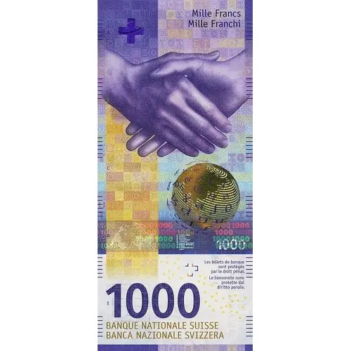 1000 Banknoten sind strafrechtlich gezützt. Las bancnotas èn protegias dal dregt penal. SCHWEIZERISCHE NATIONALBANK BANCA NAZIUNALA SVIZRA Tausend Franken Milli Francs Der Präsident des Bankrats Ein Mitglied des Direktoriums 1000 Manuela Pfrunder GMP orell füssli security printing itd Banque nationale suisse |