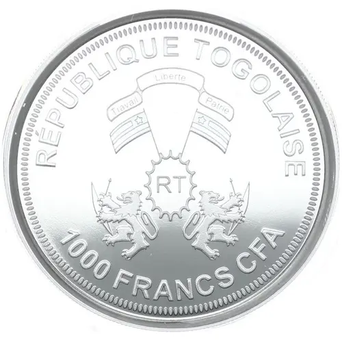 | Ön yüz lejandı | REPUBLIQUE TOGOLAISE TRAVAIL LIBERTE PATRIE RT 1000 FRANCS CFA (Translation: Togolese Republic Labour Freedom Homeland) |