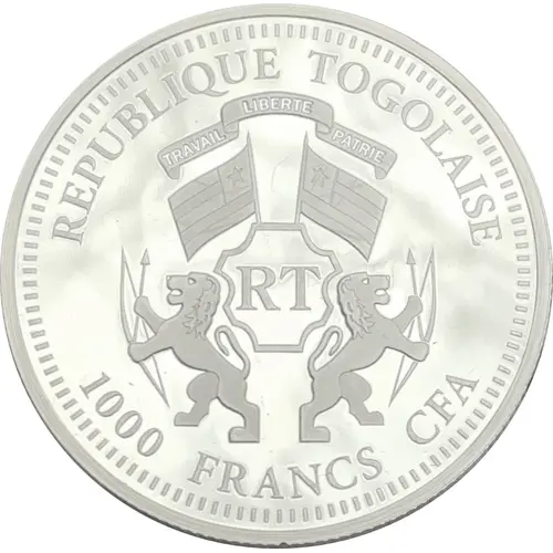 | Leyenda del anverso | REPUBLIQUE TOGOLAISE 1000 FRANCS CFA (Translation: Togolese Republic Labour Freedom Homeland) |