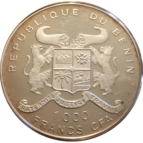 | Obverse lettering | REPUBLIQUE DU BENIN FRATERNITE JUSTICE TRAVAIL 1000 FRANCS CFA |
