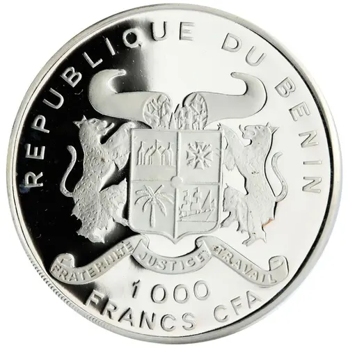 | Leyenda del anverso | REPUBLIQUE DU BENIN FRATERNITE JUSTICE TRAVAIL 1000 FRANCS CFA |