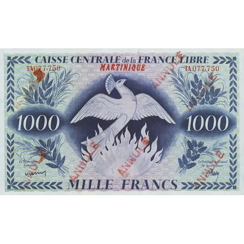 (Translation: Central Fund of Free France Martinique Thousand Francs)