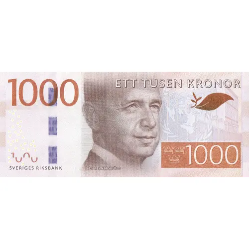 | 背面铭文 | ETT TUSEN KRONOR 1000 (Translation: One Thousand Kronor) |