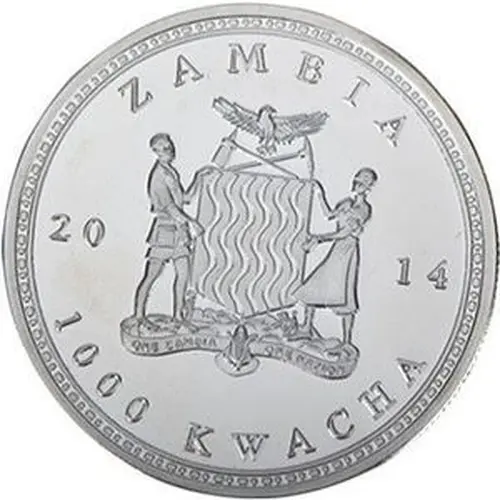 Coat of Arms (24 October 1964) between (year, left) 20 e (right) 14 Legend: (top, wide state name) Z A M B I A (below, wide value) 1 0 0 0 K W A C H A |
