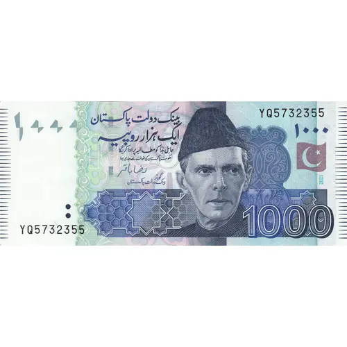 | Описание лицевой стороны | Dark blue color; Picture of Mohammed Ali Jinnah; Small flag of Pakistan on the right side below denomination written in Urdu |