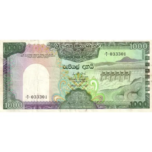 | Leyenda del anverso | Central Bank of Ceylon One Thousand Rupees |
