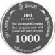 The words “Communist Party of China” in Sinhala, Tamil and English and the years 1921-2021 with Anniversary year 100 with the face value “1000” in large numerals appears at the middle of the coin. The words “Sri Lanka” in English, Sinhala, and Tamil appear along the periphery on the upper edge of the coin. The words “Rupees” in Sinhala, Tamil and English are indicated at the bottom edge of the coin. |