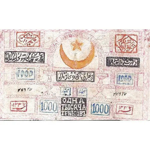 | Opis rubu | ۱000 1000 ۱۳۳۷ ОДНА ТЫСЯЧА ТЕНЬГОВЪ (Translation: 1000, 1337, One Thousand Tengov) |