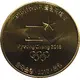 Emblem of the Pyeongchang Olympics, which is a sylised ㅍ and ㅊ - the first letter in Pyeong CHang, date and denomination below |