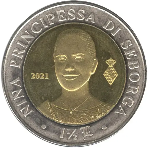 | Obverse lettering | NINA PRINCIPESSA DI SEBORGA · 11/2 L · (Translation: Nina, princess of Seborga) |