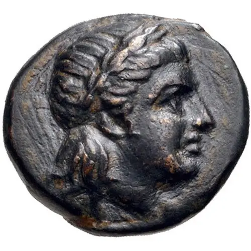 Obverse description Laureate head of Apollo right