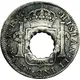 | Beschrijving keerzijde | Central circular of 15 crenations cut out between pillars, crown above. |