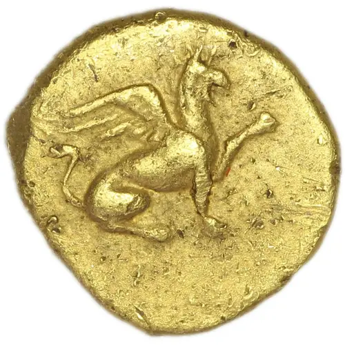 | Descrizione del dritto | Griffin, with its left forepaw raised, seated to right. |