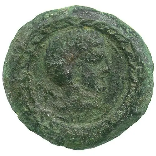| Beschrijving voorzijde | Male head wearing laureate facing right with value behind and below. |