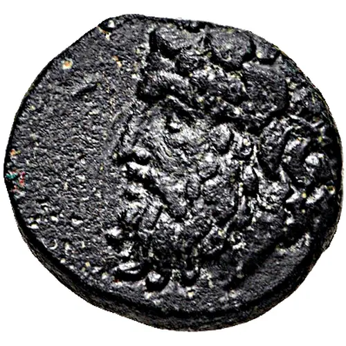 Beschrijving voorzijde Wreathed head of Dionysos facing left