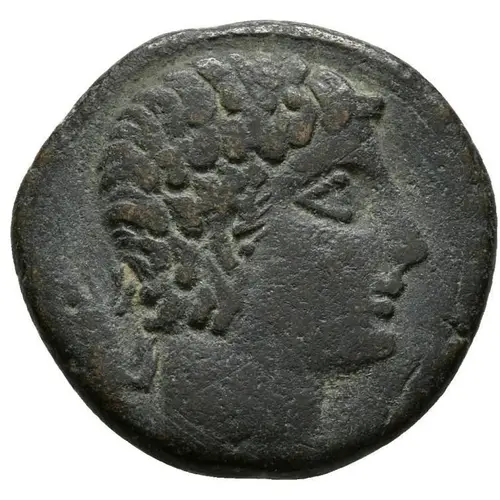 | Aversbeschreibung | Male head with mantle facing right, boar behind. |