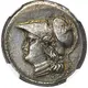 | 正面描述 | Head of Athena left, wearing single-pendant earring, necklace, aegis, and crested Corinthian helmet decorated with coiled serpent on the bowl. |