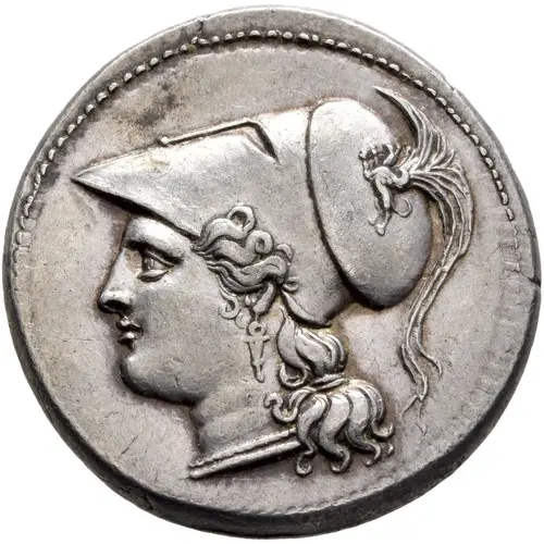 | Description de l’avers | Head of Athena to left, wearing crested Corinthian helmet. |