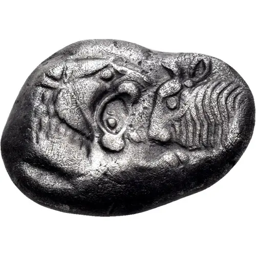 | توضیحات روی سکه | Confronted foreparts of a lion, on the left and a bull, on the right. |