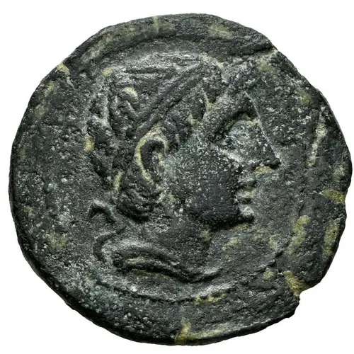| توضیحات روی سکه | Male head facing right, wearing diadem with infulae (ribbons) and mantle with shoulder fibula. |