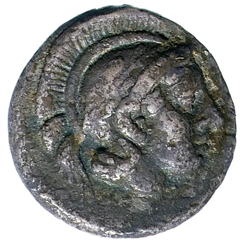 | Aversbeschreibung | Head of Athena right, wearing Attic helmet decorated with wreath. |