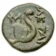 | Descripción del reverso | Coiled serpent, monogram to left |