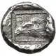 Beschrijving keerzijde Eagle`s head facing left in a dotted incuse square. Under the eagle a guilloche pattern, on the upper left a palmette within spirals.