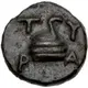 Reverse description Serpent right, rising from omphalos. Τ-Υ/Ρ-Α in two lines across field