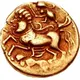 | Описание реверса | Celticized androcephalic horse galloping left; above, charioteer holding rein in left hand, right hand holding kentron attached to vexillum to left; below, winged figure flying left. |