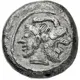 | Obverse description | Archaic janiform head composed of bearded male (left) and horned lion-demon (right), within linear circle. |