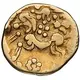 | Descrizione del rovescio | Celticized horse left, stylized charioteer above, flower symbol below. |