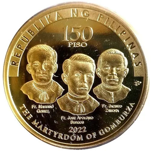 REPUBLIKA NG PILIPINAS 150 PISO Fr. Mariano Gomez Fr. Jose Apolonio Burgos Fr. Jacinto Zamora 2022 THE MARTYRDOM OF GOMBURZA (Translation: Republic of the Philippines.) |