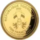 Obverse lettering RÉPUBLIQUE TOGOLAISE 2022 1500 FRANCS CFA 1/100 OZ .9999 FINEST GOLD