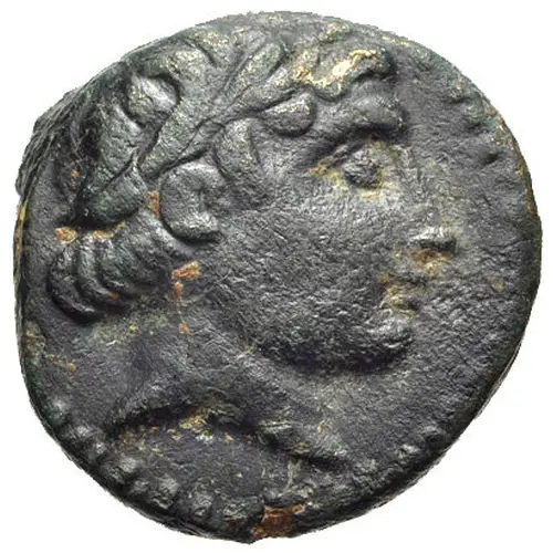Reverse description Pegasus flying right, a cadaeus below and with the name of the city above and the name of the magistrate below