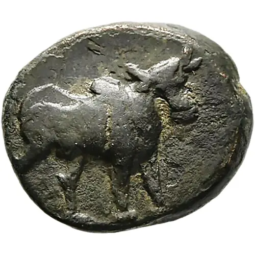 | Obverse description | Humped bull (Zebu) right, head facing |