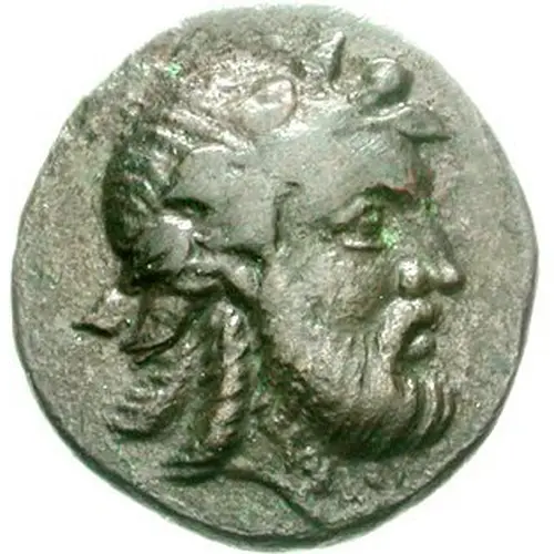 | توضیحات روی سکه | Bearded head of Dionysos facing right, wearing ivy wreath |