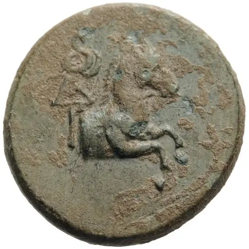 | Obverse description | Gaius Asinius, proconsul of Asia. Forepart of a horse to right; to left, coiled serpent above monogram |