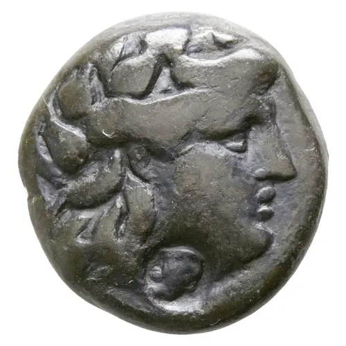 | Reverse description | Monogram within ivy wreath, filleted thyrsos to right. |