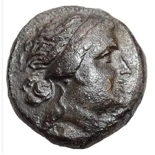 | Descrição do anverso | Diademed female head right, hair bound in a taenia |