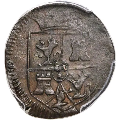 | Descrição do anverso | Crowned shield with lions and castles. |