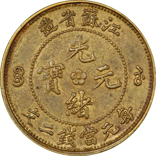 | Obverse lettering | 造省蘇江 ᠪᠣᠣ ᠰᡠ 光 寶元 緒 文二錢當元毎 (Translation: Made in Kiangsu Province Boo-su (mint) Guangxu (Emperor) / Yuanbao (Original currency) Each piece worth 2 Cash) |