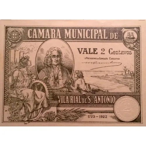 Legenda awersu CAMARA MUNICIPAL DE VILA RIAL DE Stº ANTONIO VALE 2 Centavos
