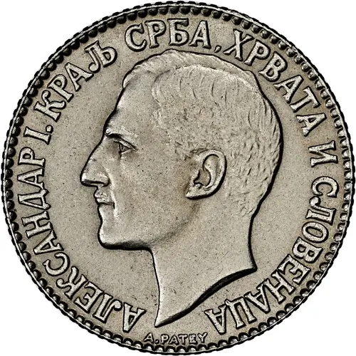 Legenda do anverso АЛЕКСАНДАР I. КРАЉ СРБА, ХРВАТА И СЛОВЕНАЦА A.PATEY