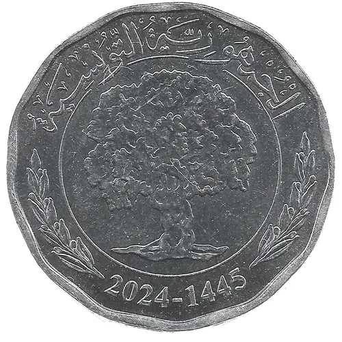 | Legenda awersu | الجمهورية التونسية 2024-1445 (Translation: Republic of Tunisia) |