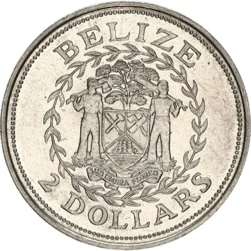 | توضیحات روی سکه | Coat of arms of Belize within wreath. Beaded circle around the rim. |
