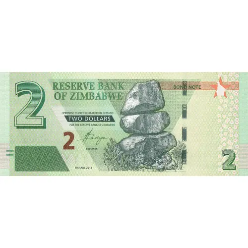 RESERVE BANK OF ZIMBABWE BOND NOTE 2 TWO DOLLARS |