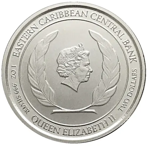 | Obverse lettering | EASTERN CARIBBEAN CENTRAL BANK 1 OZ .999 SILVER QUEEN ELIZABETH II TWO DOLLARS |