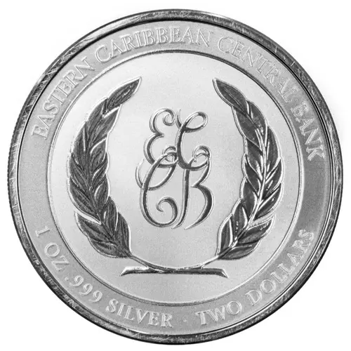 | Chữ khắc mặt trước | EASTERN CARIBBEAN CENTRAL BANK EC CB 1 OZ .999 FINE SILVER · TWO DOLLARS |
